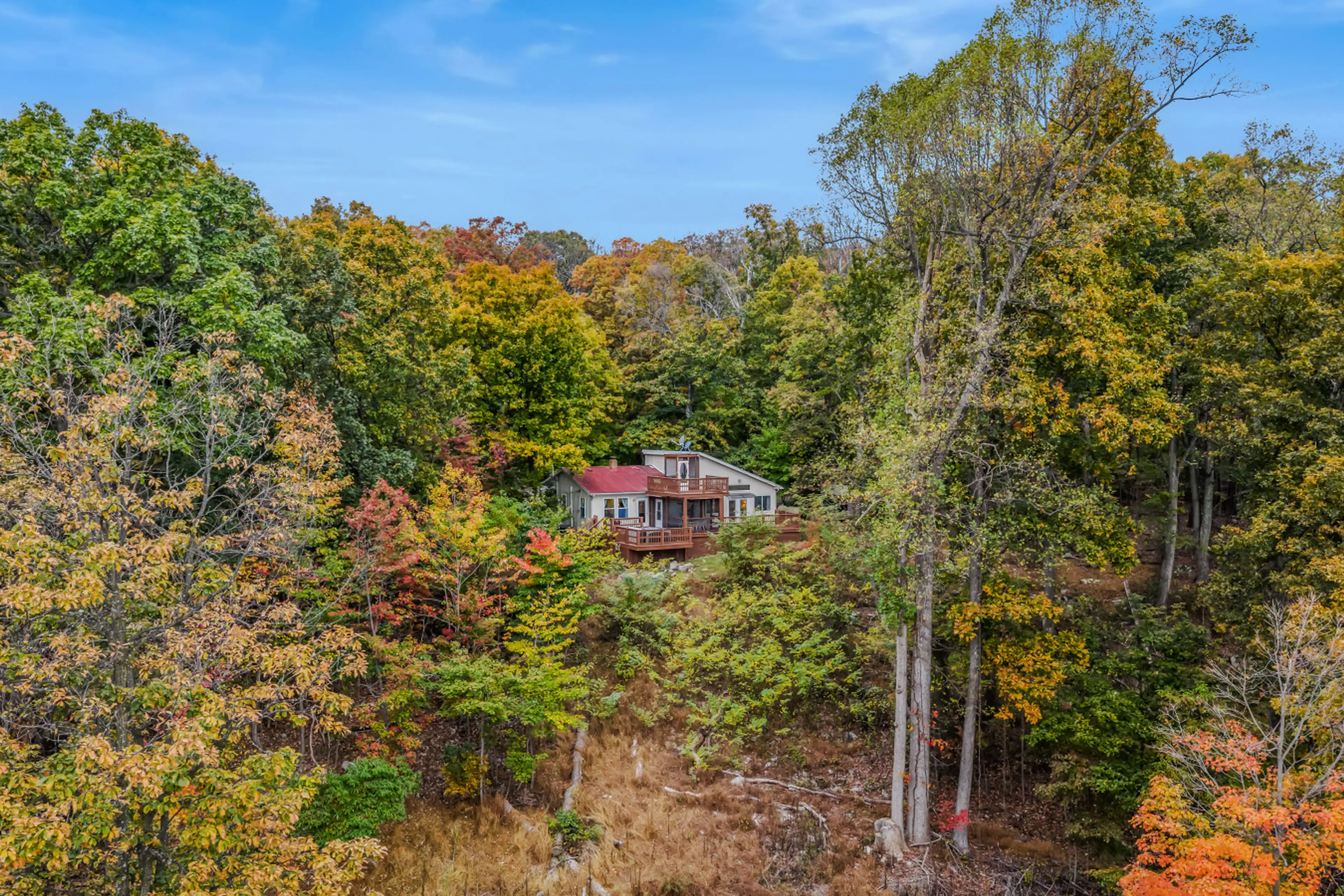 Above Sleepy Hollow - Rooftop deck, amazing views, hot tub, pet friendly, screen porch, wifi, EV charger, games, trails, wood stove, charcoal grill, lake access, king bed