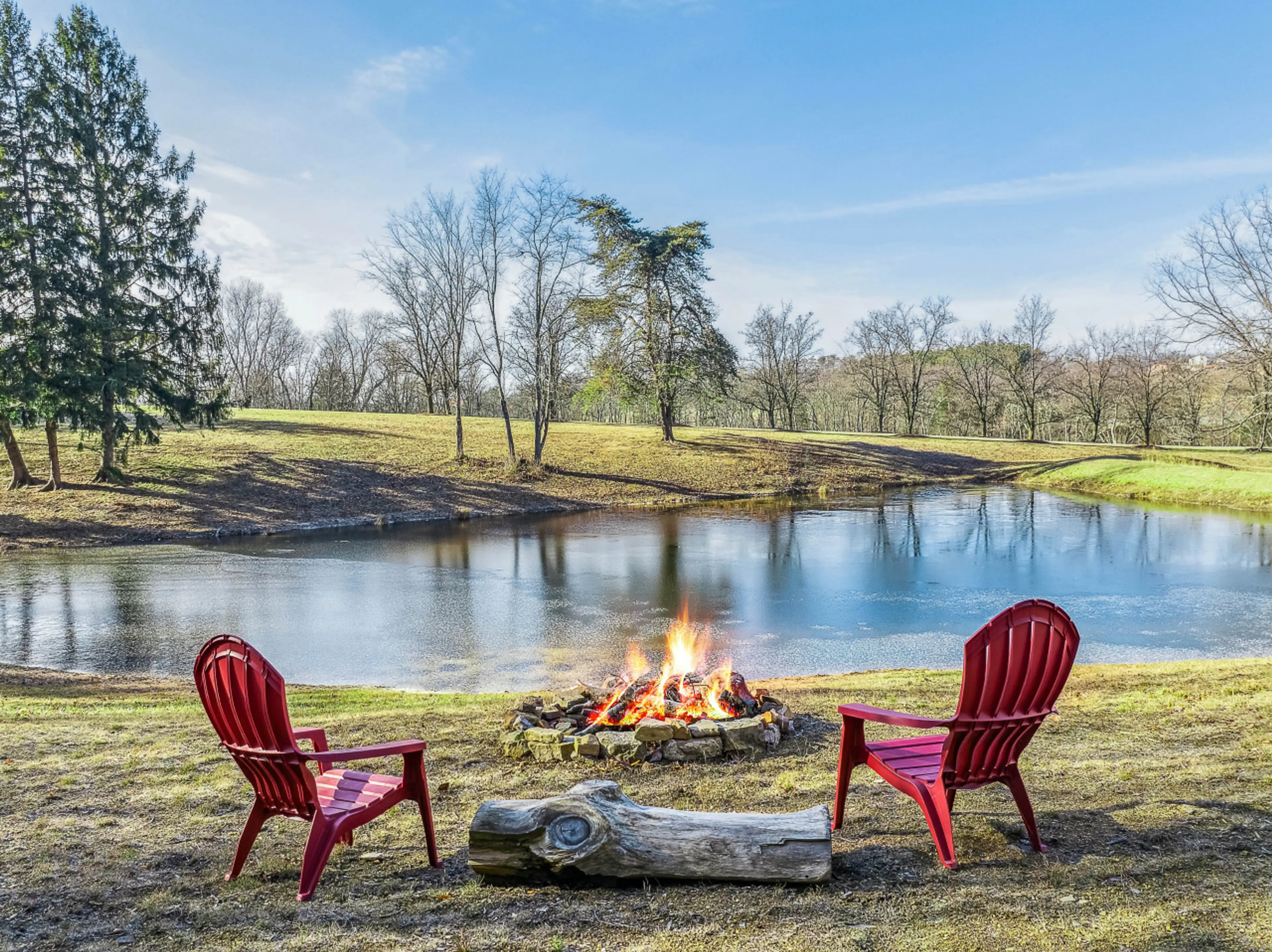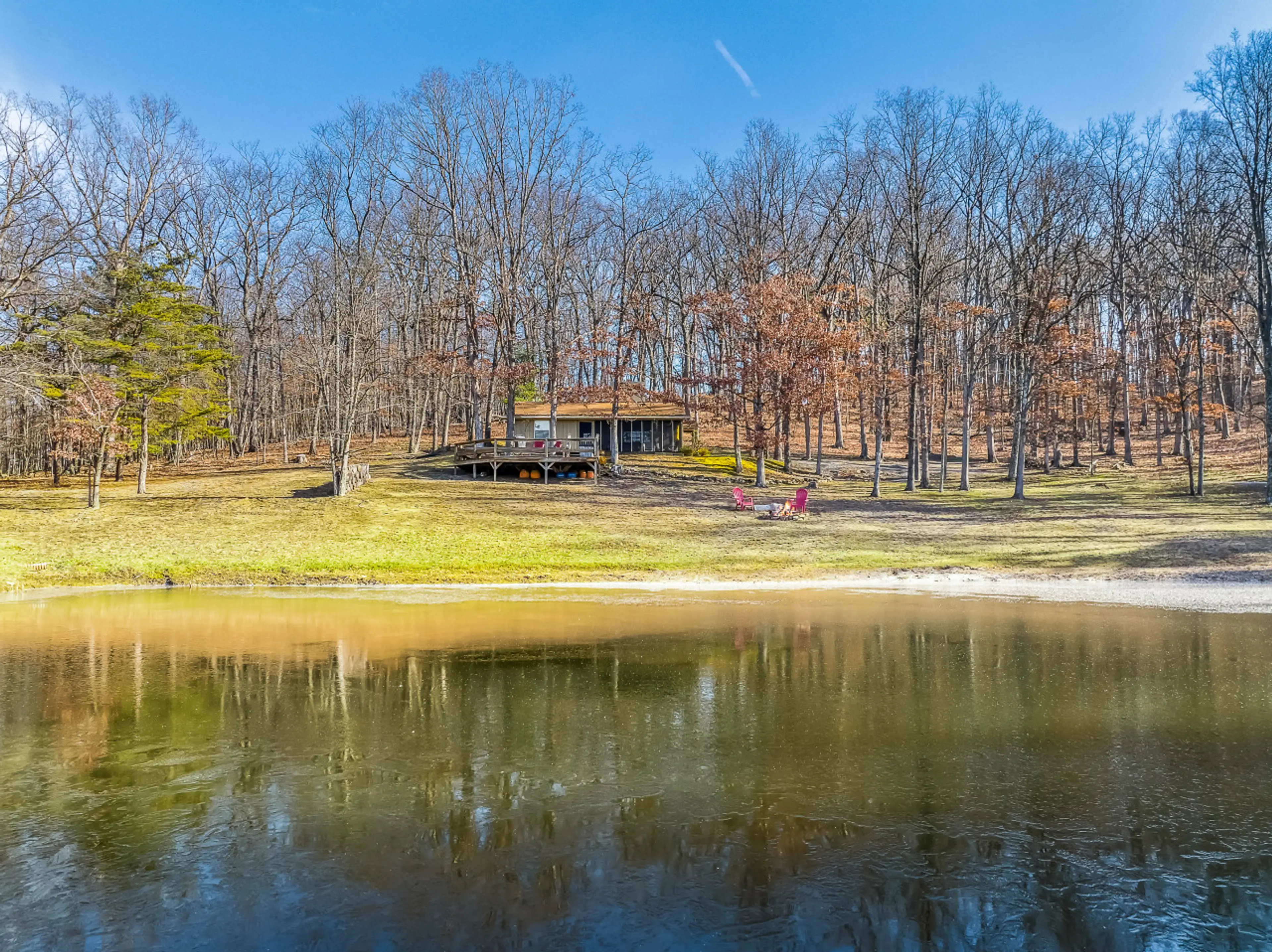 We enjoyed the covered porch at night, and the deck during the day. The pond was peaceful with geese swimming and turtles coming out of the water to sun themselves. We will definitely stay there again when we are in the area.