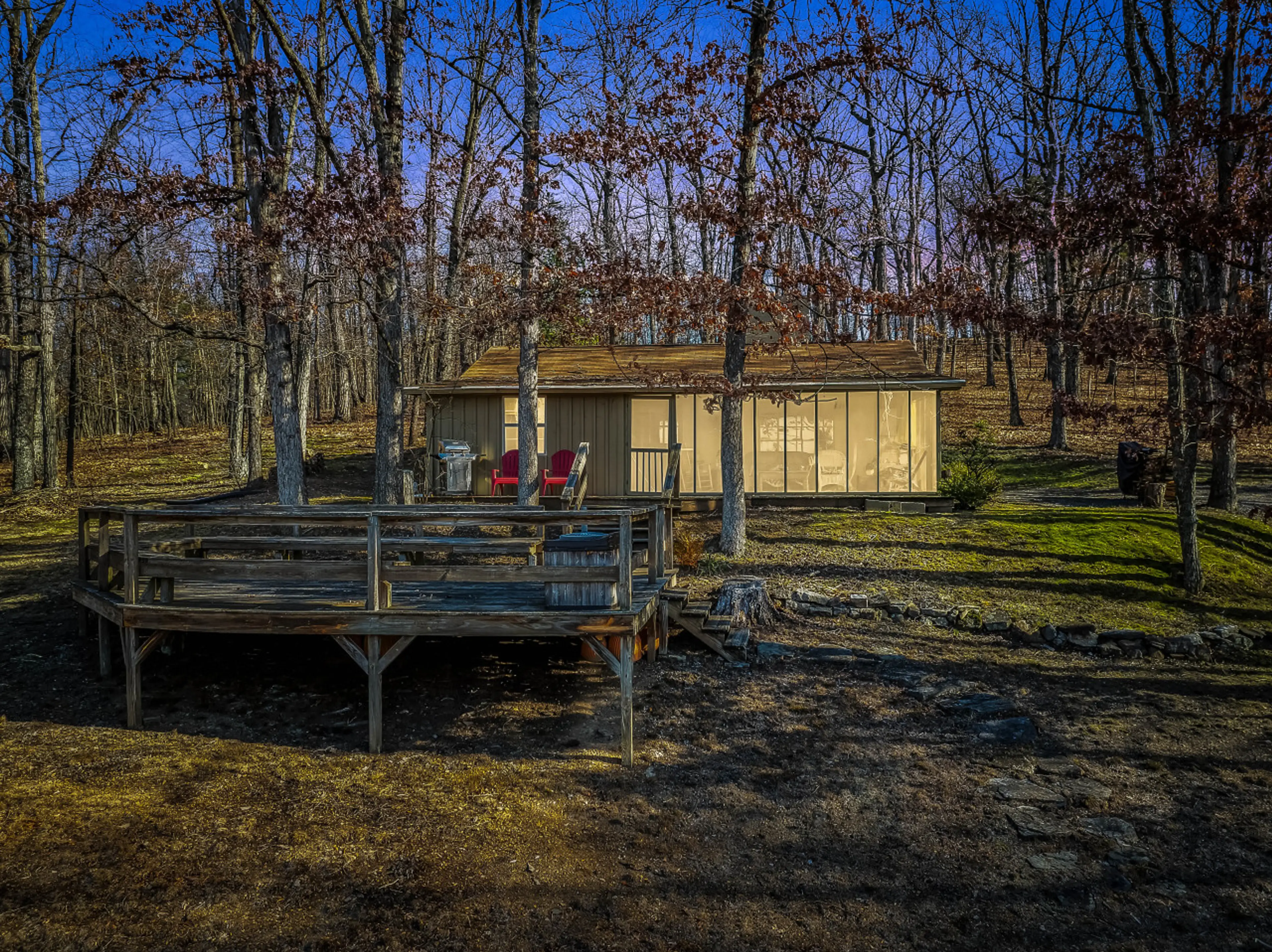 Cottage Inn The Woods: Pond |Pet Friendly | Grill | Wifi |Fire Pit | Deck | Screen Porch | Fireplace | Private